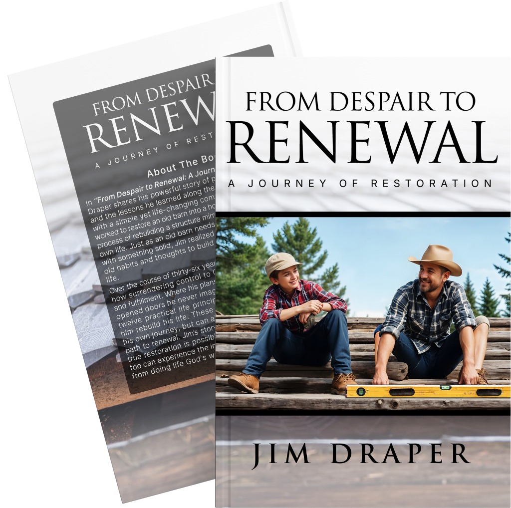 In “From Despair to Renewal: A Journey of Restoration,” Jim Draper shares his powerful story of personal transformation and the lessons he learned along the way. The journey began with a simple yet life-changing commitment to Christ. As Jim worked to restore an old barn into a home, he discovered that the process of rebuilding a structure mirrored the restoration of his own life. Just as an old barn needs its worn materials replaced with something solid, Jim realized that he too needed to shed old habits and thoughts to build a stronger, more successful life. Over the course of thirty-six years, Jim has witnessed firsthand how surrendering control to God leads to a life of purpose and fulfillment. Where his plans led to despair, God’s guidance opened doors he never imagined. In this book, Jim outlines twelve practical life principles from scripture that helped him rebuild his life.